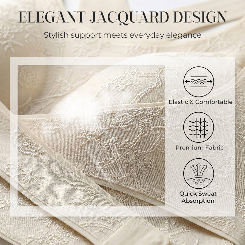 Elegantná žakárová tkanina - tento podprsenka sa vyznačuje exkluzívnymi kvetinovými žakárovými detailmi a plynule kombinuje výnimočnú funkčnosť s rafinovaným štýlom. Je vyrobená z mäkkého, priedušného materiálu, ktorý zaisťuje pohodlie pri nosení, a dodá vášmu šatníku nádych elegancie.