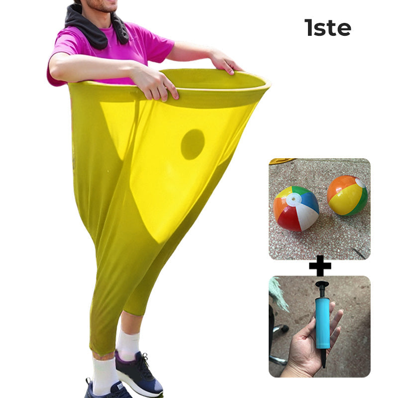 KOMPLETNÁ A PRIPRAVENÁ K HRE – Sada obsahuje všetko, čo potrebujete: chyták v tvare babičkiných nohavíc, dve nafukovacie loptičky a pumpičku pre rýchle nafúknutie. Všetky časti sú ľahké a skladné, takže sa ľahko prenášajú a ukladajú.
