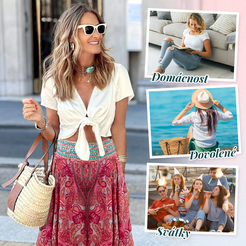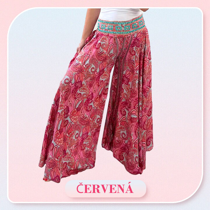 【🎁📿Ružový náhrdelník zadarmo🎁】💕Elastické nohavice v páse s etnickou potlačou🌸
