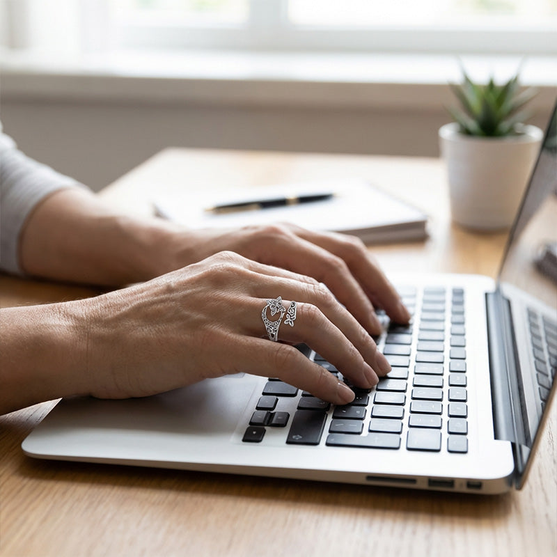 NASTAVITEĽNÝ OTVORENÝ DIZAJN: Vďaka praktickému otvorenému dizajnu je možné tento prsteň jemne nastaviť tak, aby perfektne sedel na väčšinu veľkostí prstov. To zaisťuje pohodlné a bezpečné nosenie bez nutnosti presného určovania veľkosti.