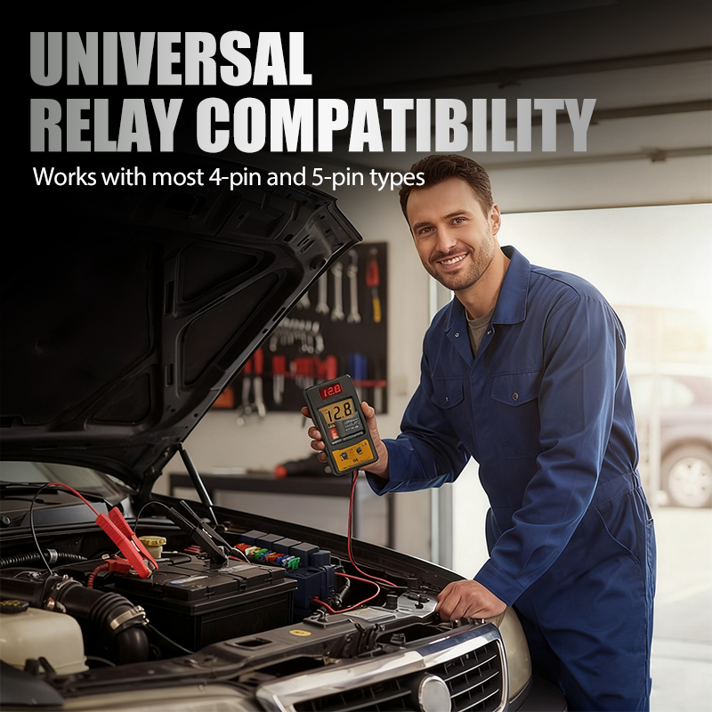UNIVERZÁLNA KOMPATIBILITA – Tento tester, navrhnutý s ohľadom na maximálnu univerzálnosť, je kompatibilný s väčšinou štandardných 4pinových a 5pinových automobilových relé. Eliminuje tak potrebu používať mnoho špecializovaných testerov a zaisťuje pripravenosť na rôzne diagnostické scenáre.